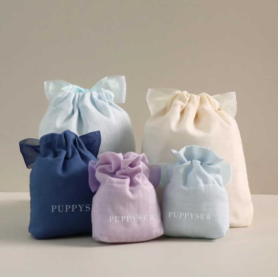 PUPPYSEW beige satin drawstring bag personalized custom logo dust bag jewelry packaging bag printing wholesale gift packaging product bag